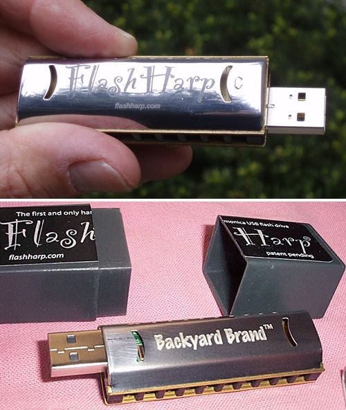 De todos os pendrives com formatos diferentes que foram lançados até hoje, este com certeza está na minha lista dos 10 mais interessantes. Trata-se de um pendrive que também é uma mini gaita de boca, ou seja, não é só o formato de uma não, ela é realmente uma gaita de boca.